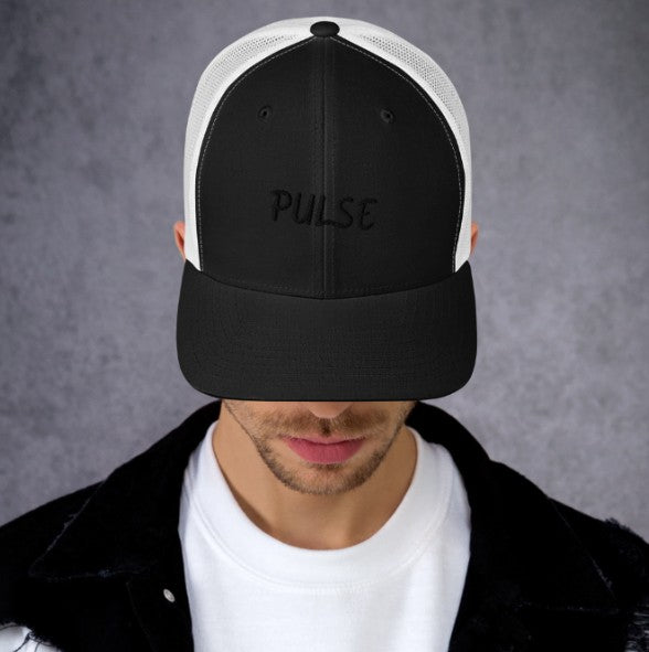 Gorra tipo trucker con seis paneles y rejilla en la parte posterior.